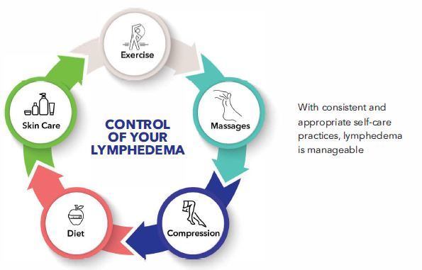 Once the intensive, in-clinic phase is done, you will be taught and able to perform MLD on your own by your lymphedema therapist. Once you have a fitted compression garment, it must be worn all day, every day, and replaced every 6-to-12 months. Obesity not only causes lymphedema - it also complicates it, so a healthy diet is essential for long-term management.