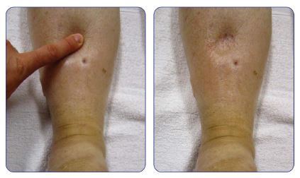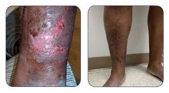 Over a period of 6 weeks, this patient went from wounds leaking fluid and swelling to healed legs and well-managed swelling . The key to his treatment was a stent, compression wrapping with absorbent wound dressing, consistent skin care, weight management and compression stockings.