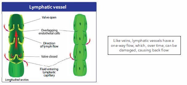 Normally, your lymphatic vessels carry waste fluid (which contains unused proteins and nutrients, or bacteria and waste) for breakdown in the lymph nodes or filtering in the heart. When the lymphatic vessels fail, lymph fluid accumulates, causing chronic swelling.