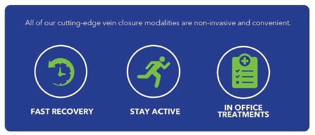 Our complete treatment plans are personalized to your clinical need and insurance requirements. Our doctors are trained in all modern vein closure modalities, including the newest non-thermal technologies, such as Varithena and VenaSeal. The best choice will be made to match your needs.